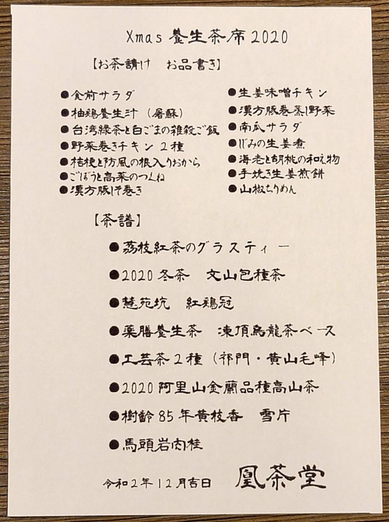 昨日はX’mas後茶会改め冬の養生茶会へのご参加ありがとうございました(^^)