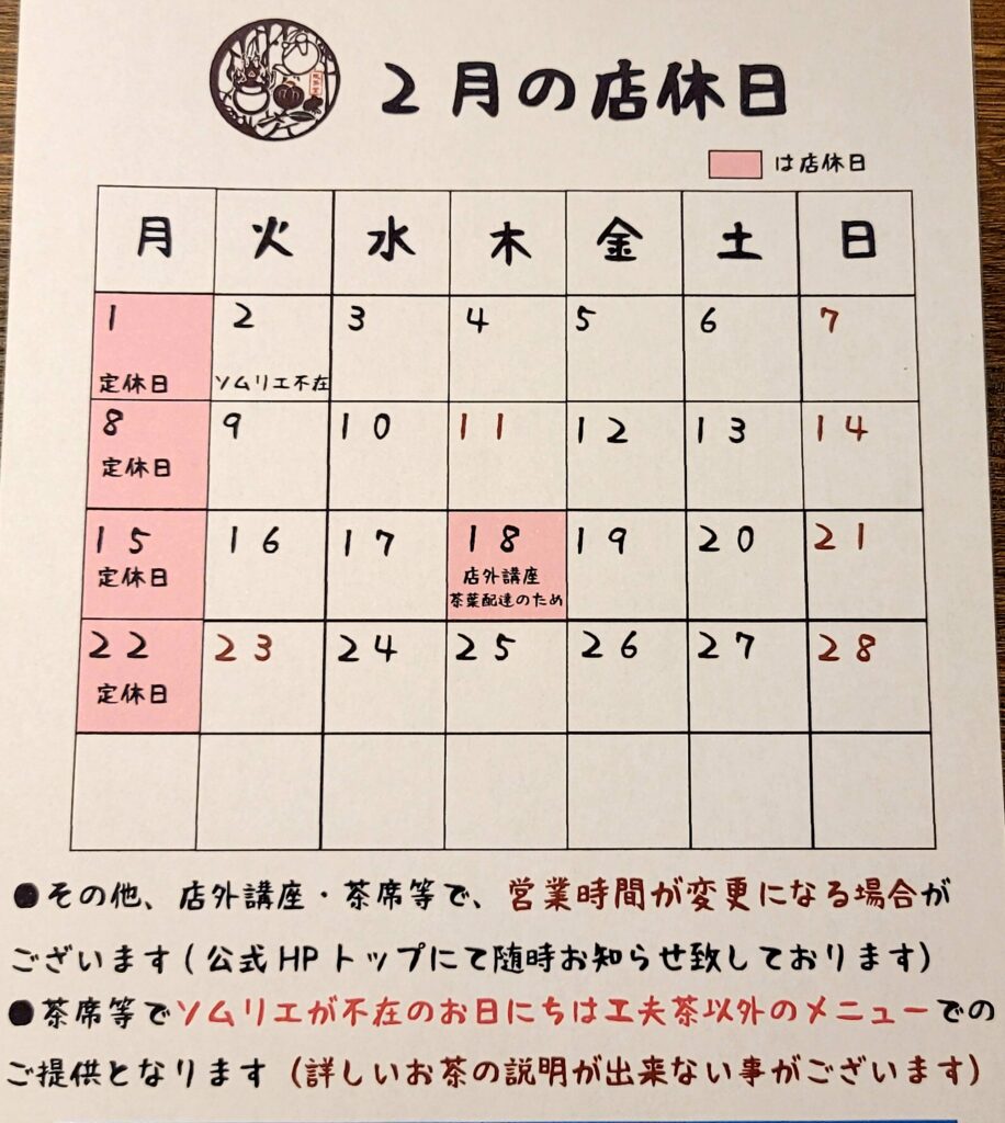 2月の店休日は