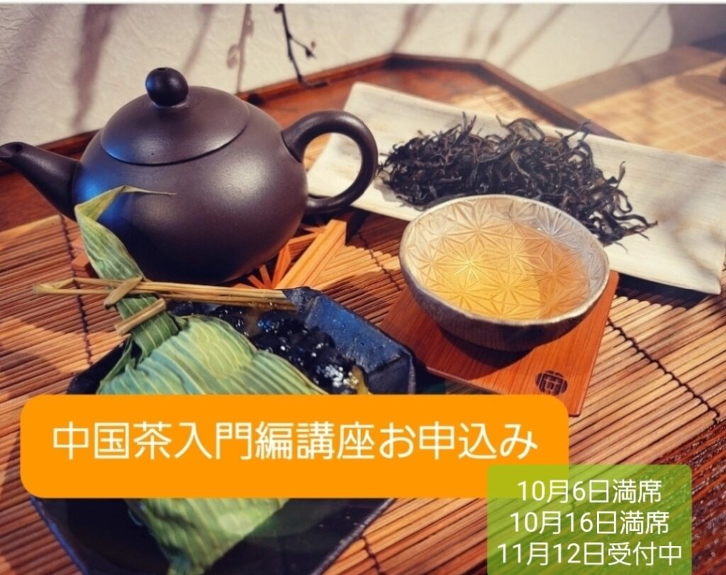 9月24日(金)元気に営業致しております✨昨日お知らせの中国茶入門編講座のお申し込みが開始致しました✨今回は4月ぶりの開催ということでたくさん日程設定しましたが、あと残り一クラスとなっております。お申し込み方法はWebからとなっております