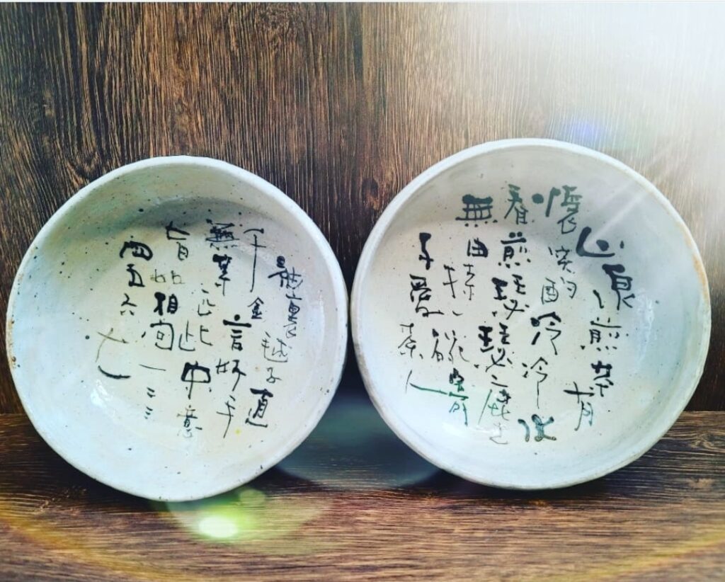 10月26日(火)元気に営業致しております✨吉見先生にお願いしておりました漢詩のお皿の新しい仲間が増えました🍀秋のお茶会はご飯が養生カレーがメインだからカレーで漢詩を沈めるのは可愛そうかなぁ…