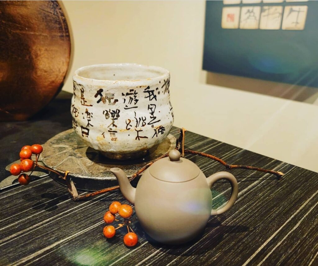 12月7日(火)元気に営業致しております✨茶海や水盂としても活躍の良寛さんの漢詩湯飲み(作:吉見螢石先生)✨今日は湯飲みとして活用❣️