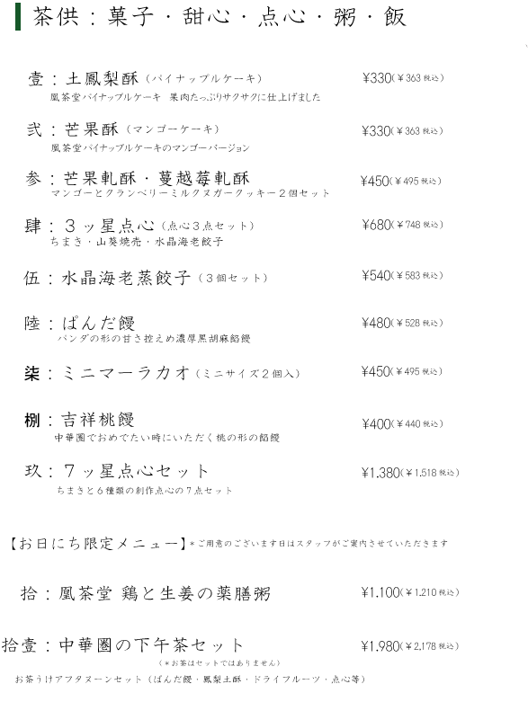お茶のお供としましてお食事やデザートもご用意致しておりますが